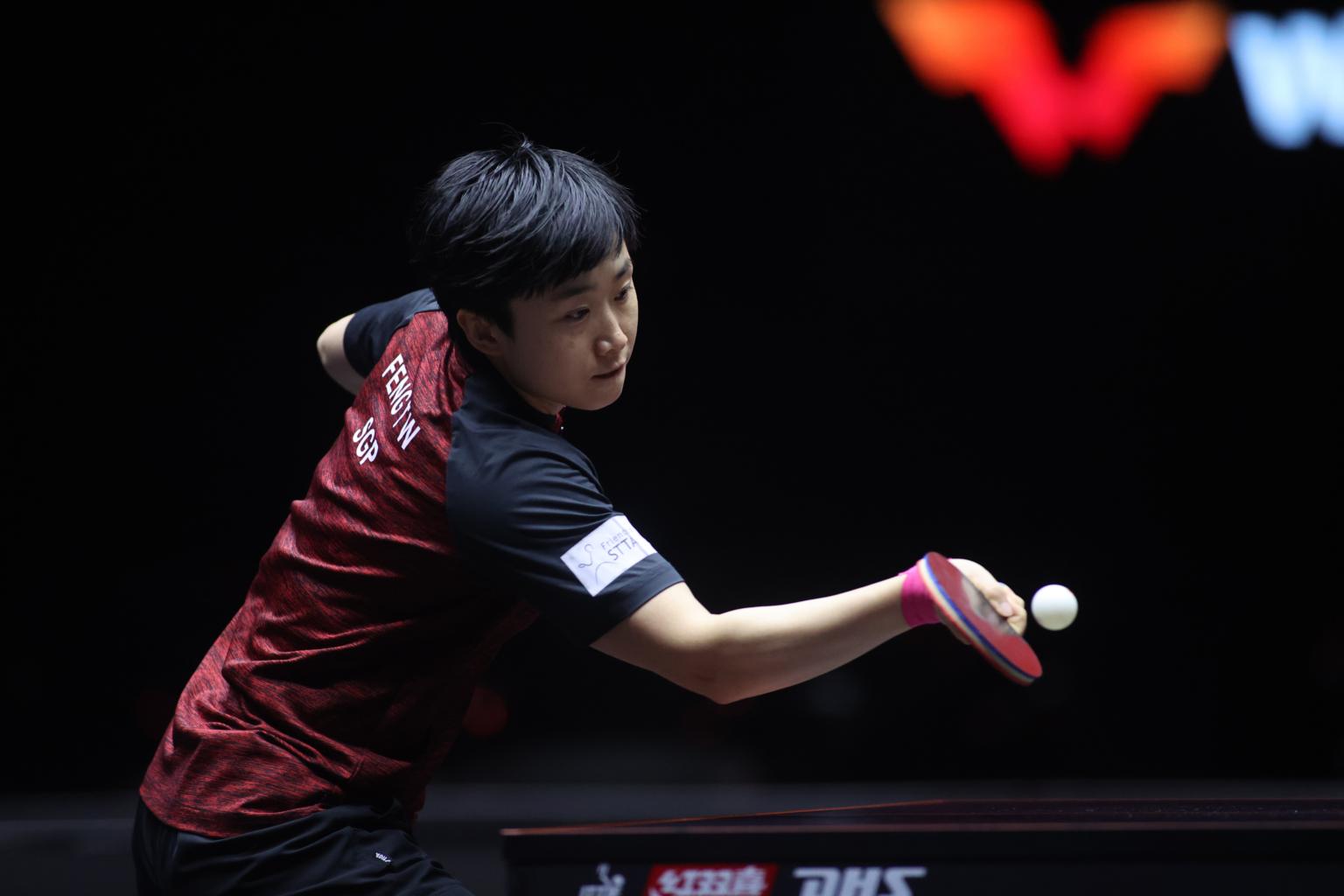 Singapore's Feng Tianwei in action at the promotional WTT Macau showcase against American Lily Zhang on Nov 26, 2020.