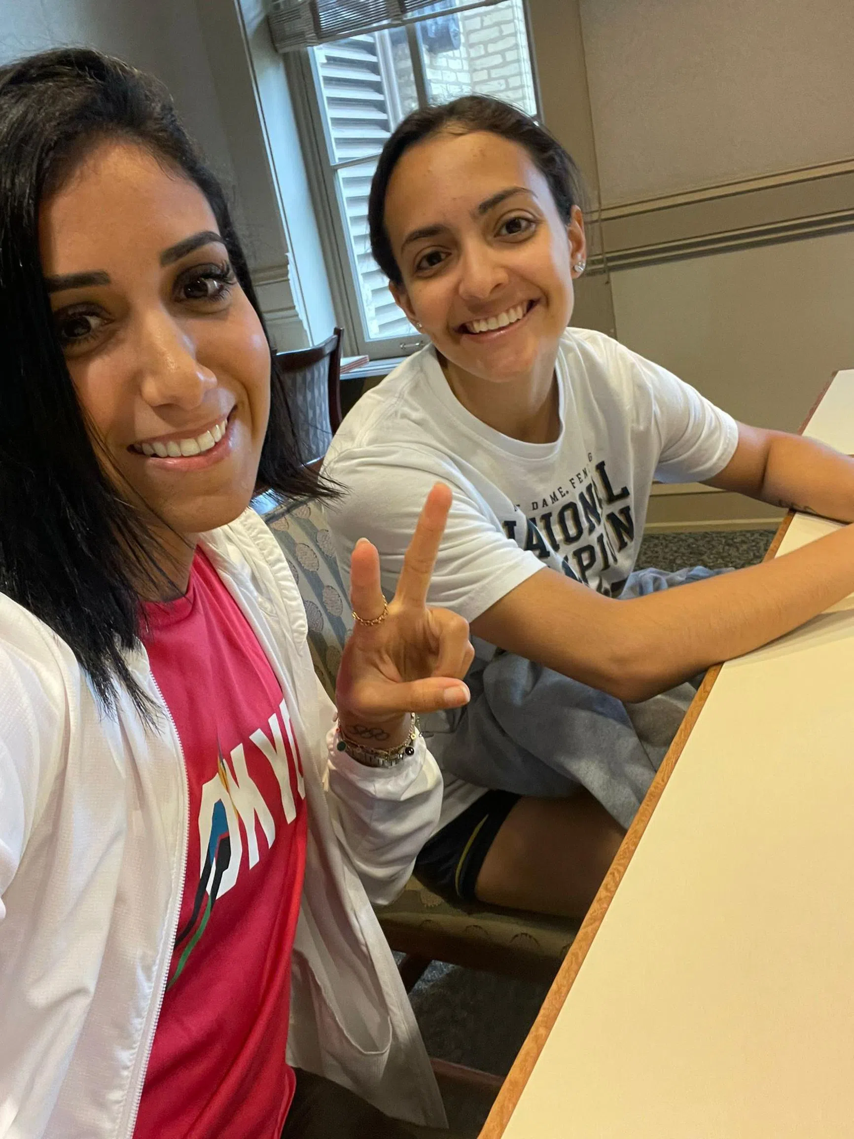 Ines Boubakri (left) with Singaporean fencer Amita Berthier during a training camp in France.