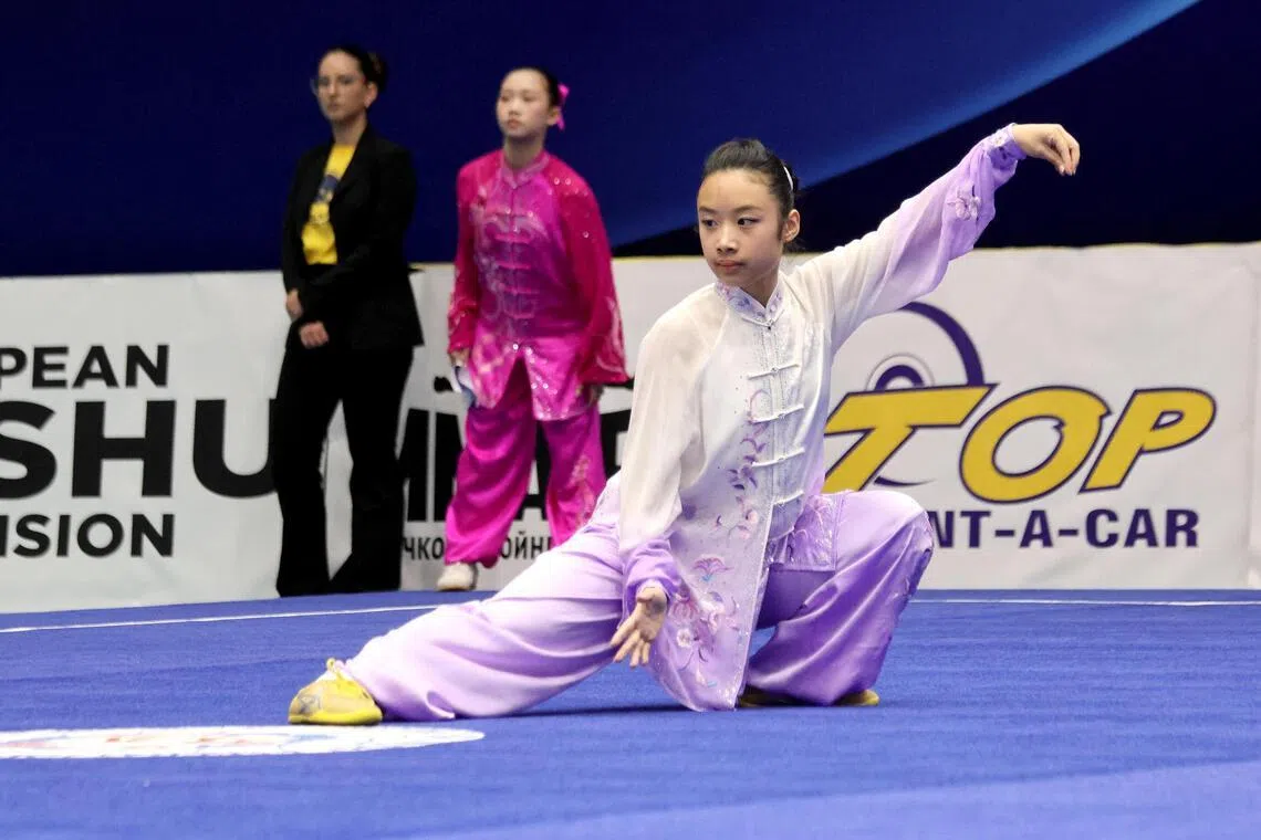 Singapore’s Cholene Aw performing her women’s 24-movement taijiquan routine at the World Taijiquan Championships in Burgas, Bulgaria, where she won three gold medals.