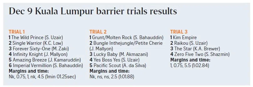 A five-year-old by Vancouver, Kim Empire was a smart winner in the third and final trial run off on the morning of Dec 9.