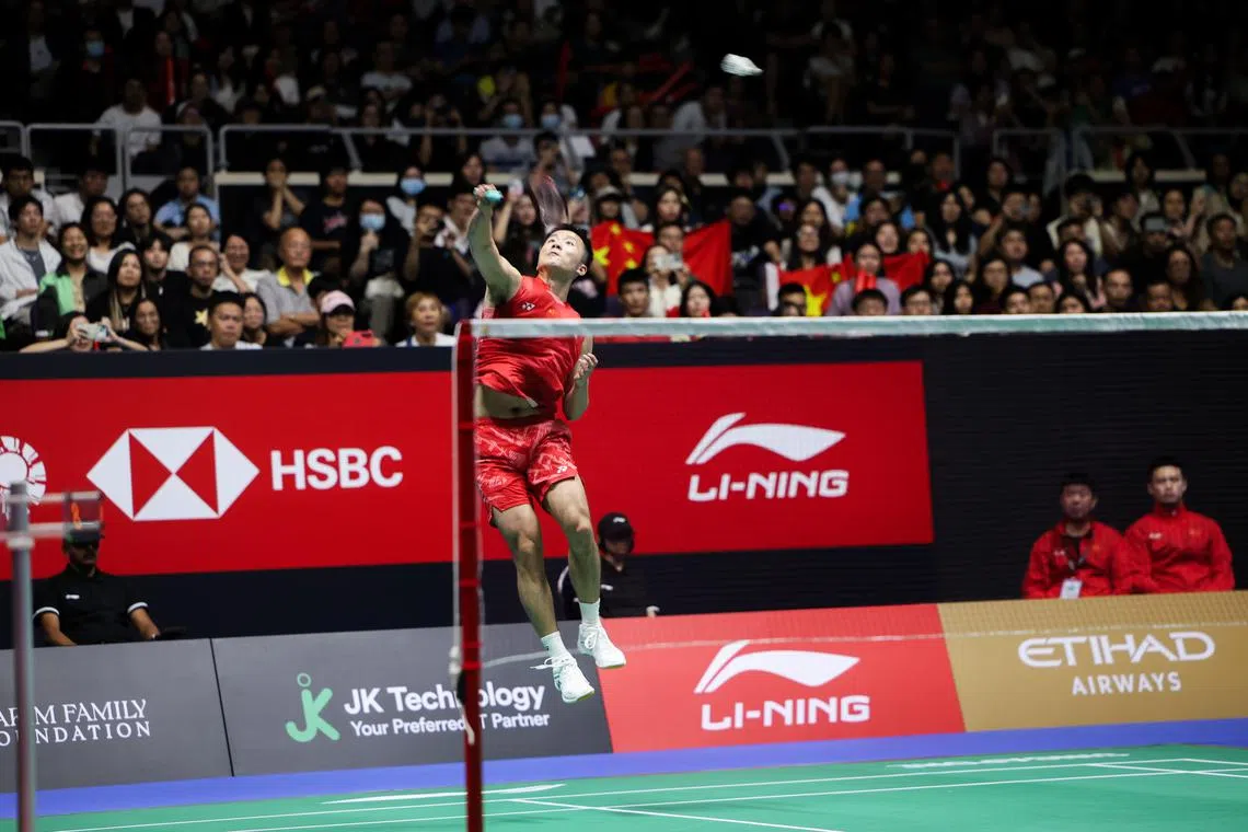 After taking the first game 21-11 against Lin, he faced stronger resistance as the Taiwanese southpaw raised his intensity, making spectacular diving saves that thrilled the 7,220-strong crowd.