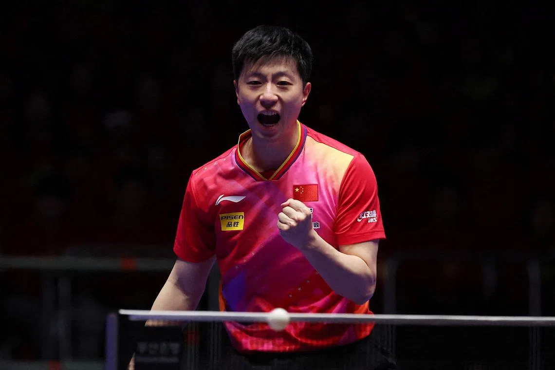 China’s Ma Long reacts during his men’s team final match against France’s Simon Gauzy at the 2024 ITTF World Team Table Tennis Championships Finals.