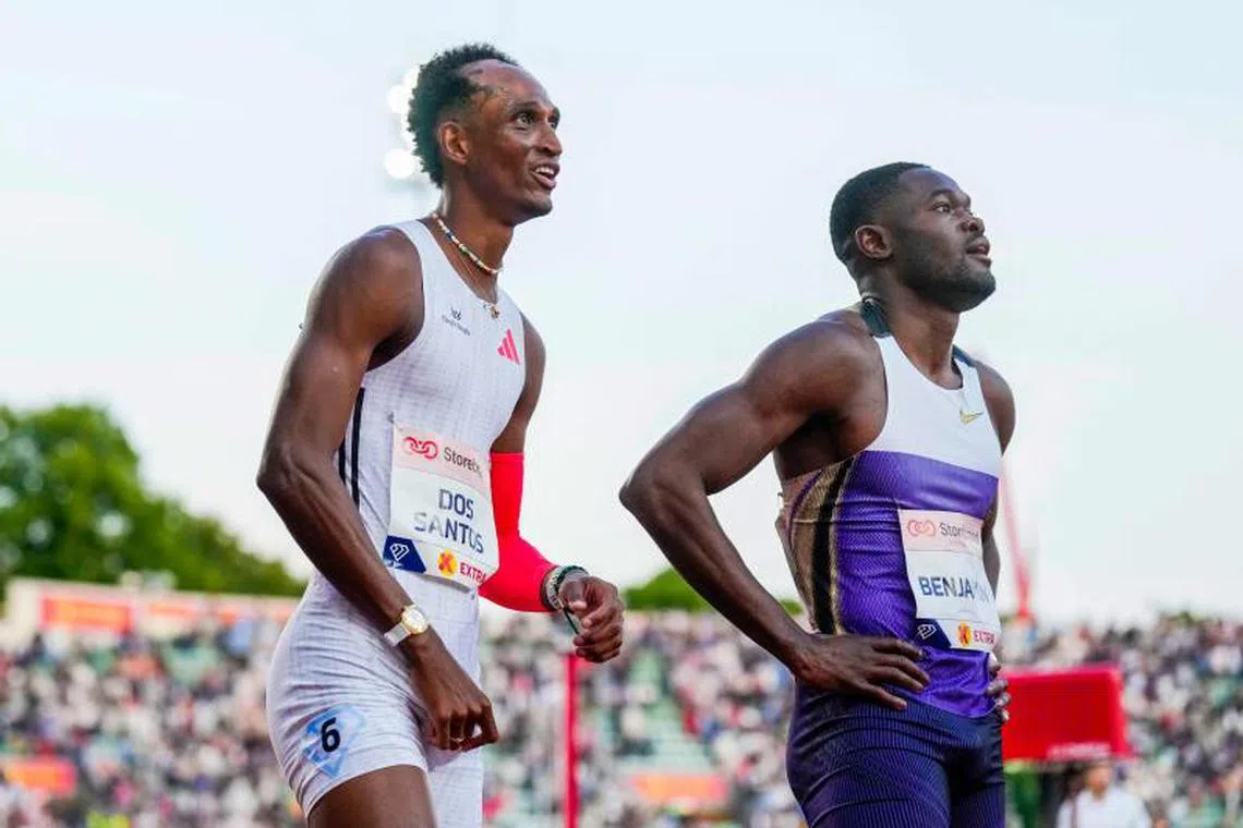 Olympic champion Rai Benjamin edged out Alison dos Santos to win the men’s 400m hurdles, with Karsten Warlhom a distant third.