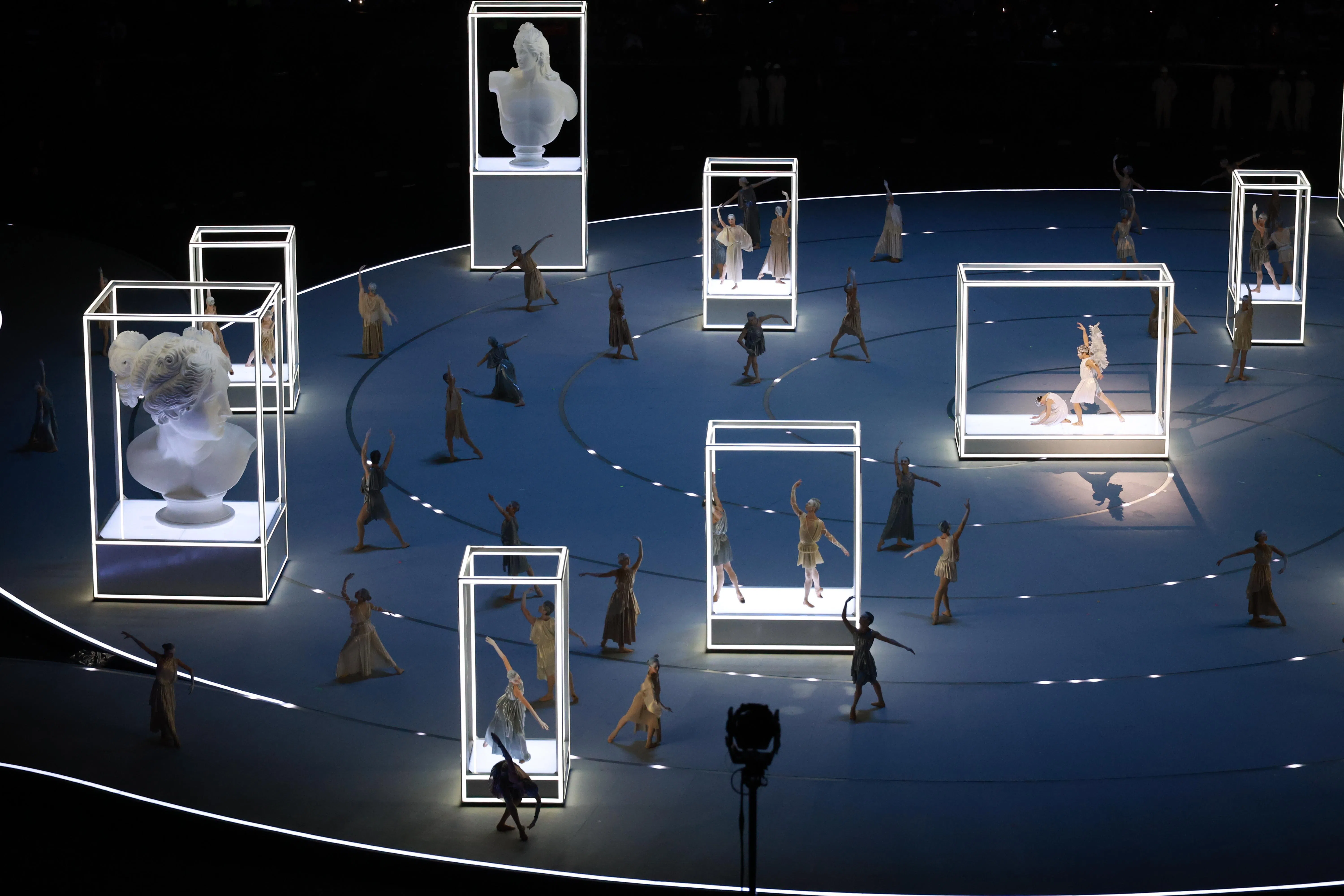 Performers dancing during the “Italian Armonia: Beauty” performance at the opening ceremony in Milan.