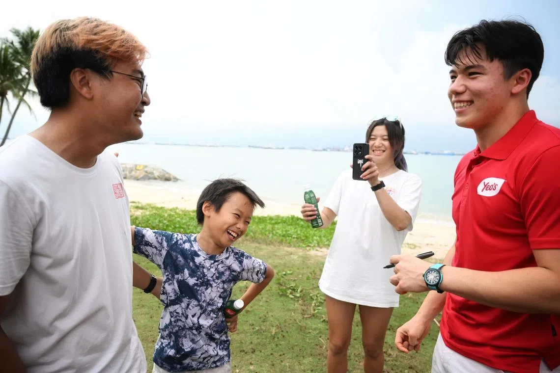 (From right) Singaporean kitefoiler Maximilian Maeder shares a lighthearted moment with Josie Tan, Tan Ming Yu and Raynn Kwok during a meet-and-greet session at the Aloha Sea Sports Centre on Nov 9.