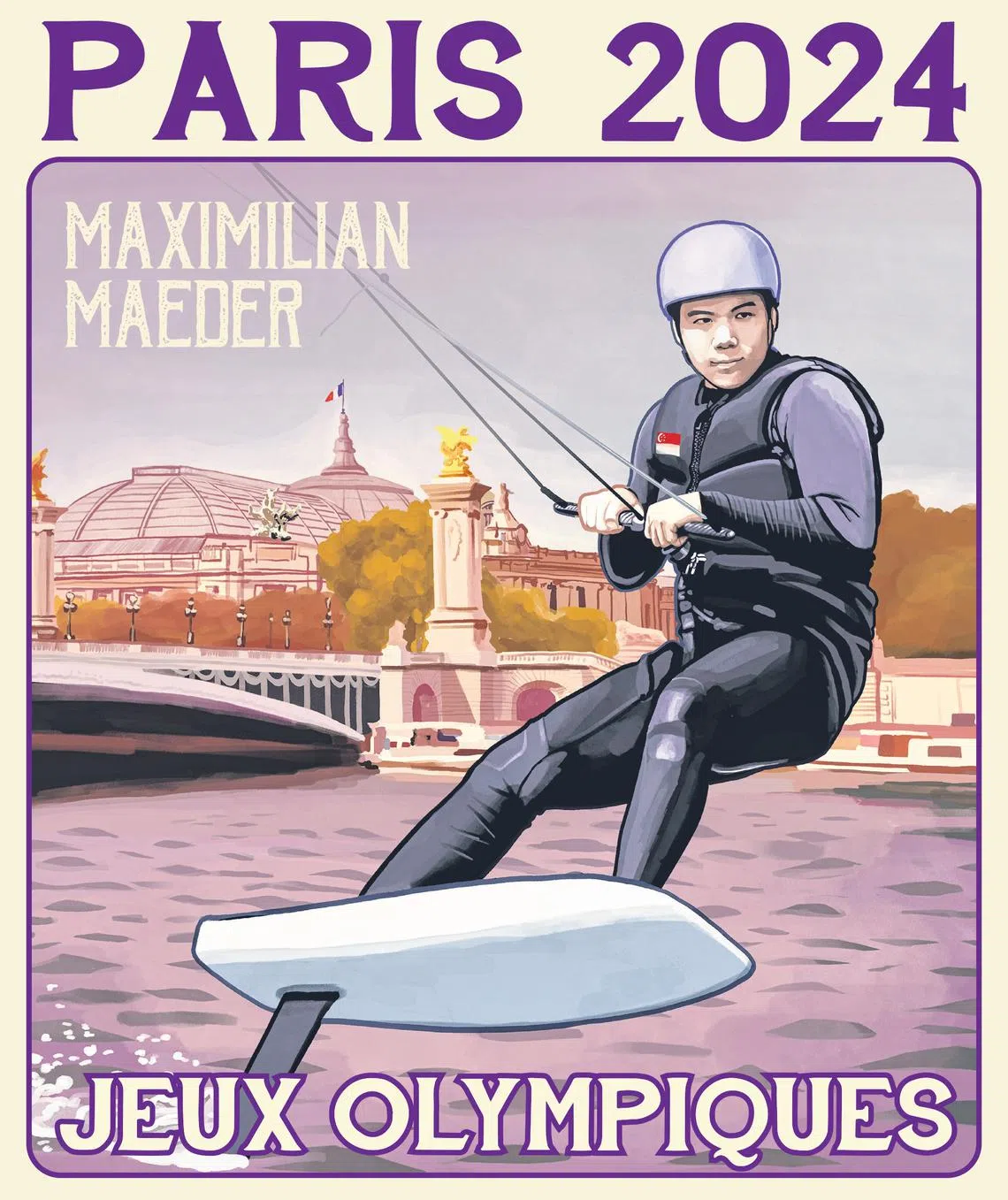 Singaporean kitefoiler Max Maeder is one of the favourites for gold at the Paris Olympics.