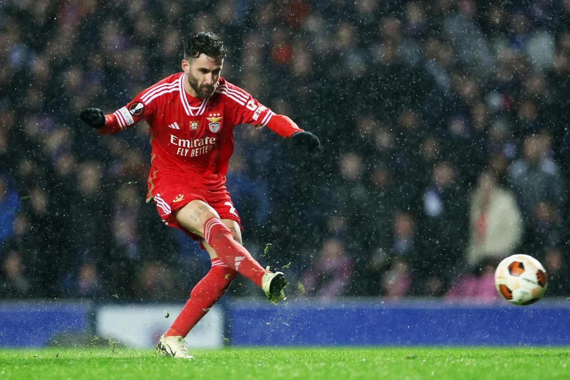 Benfica’s Rafa Silva scores the winning goal against Rangers.