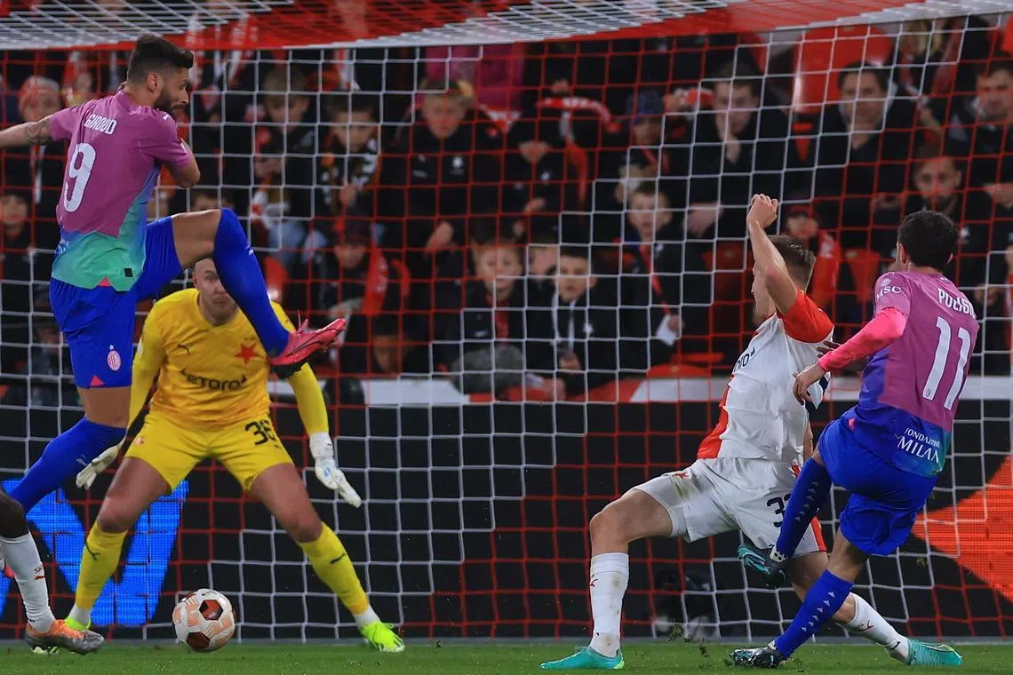 Already trailing 4-2 from the first leg, Slavia’s uphill task became an impossible one once Tomas Holes was shown a straight red card after a VAR review for a stamp on Davide Calabria.