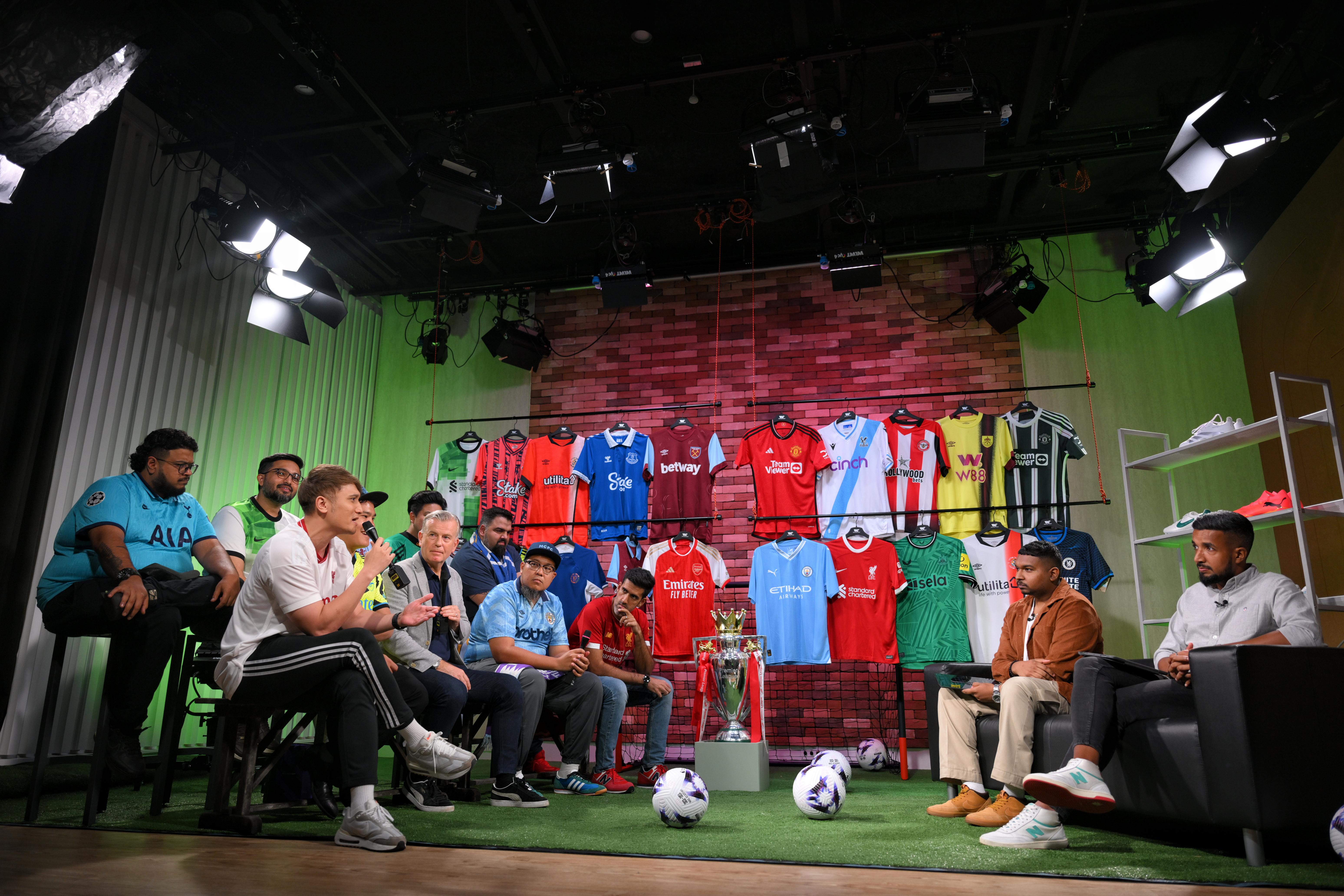 ST's Deepanraj Ganesan (second from right) and MoneyFM's Zia-ul Raushan hosting fans of English Premier League clubs on May 20.