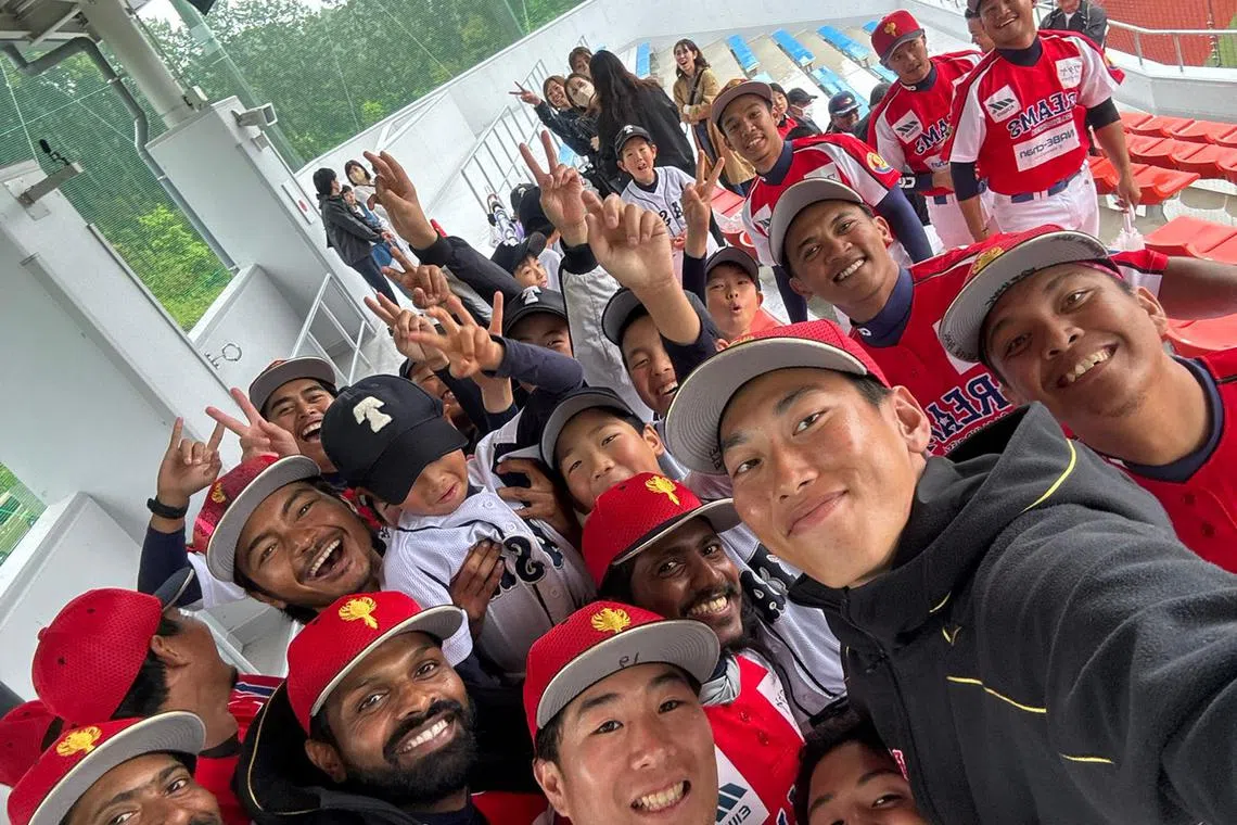 National baseballer Eleazar Ng (bottom right) was impressed by the strong baseball culture in Japan.