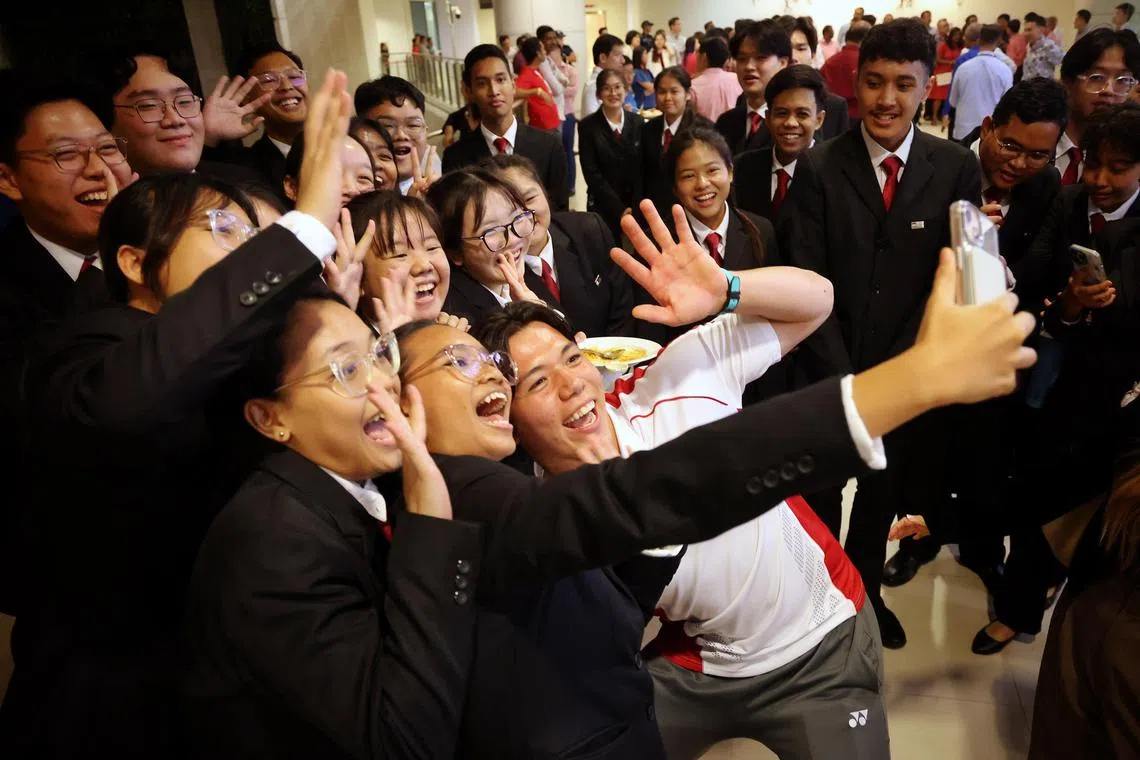 Olympic bronze medallist Maximilian Maeder posing for photos after the National Day Rally at ITE College Central on Aug 18.