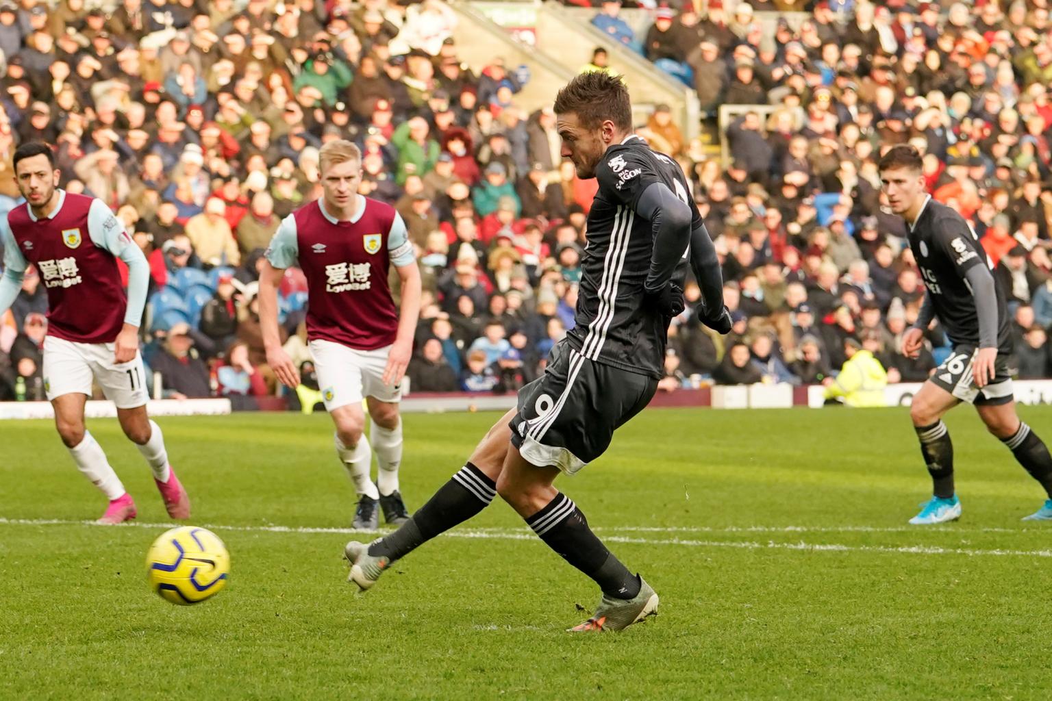 Leicester City's Jamie Vardy misses from the penalty spot in Britain on Jan 19, 2020.