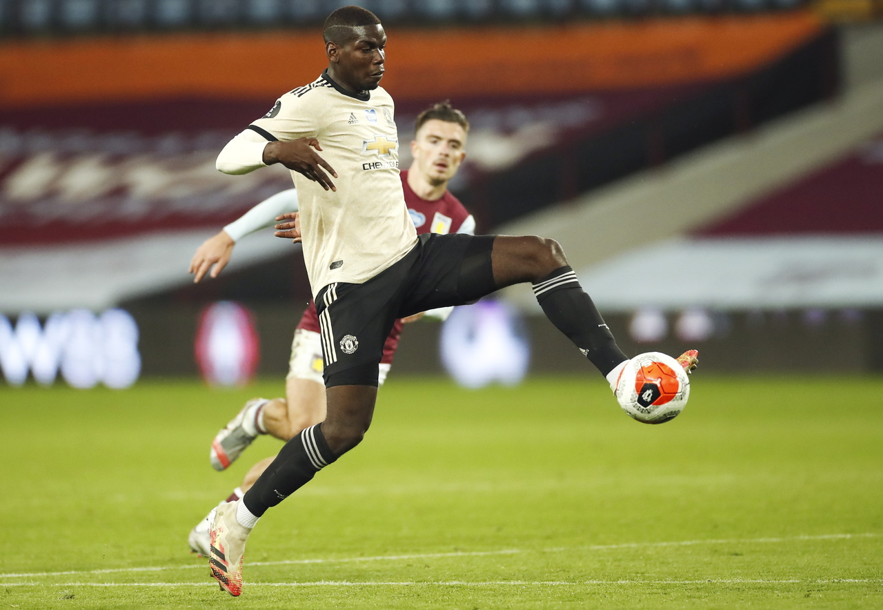 Paul Pogba of Manchester United in action during the English Premier League match between Aston Villa and Manchester United, on July 10, 2020.