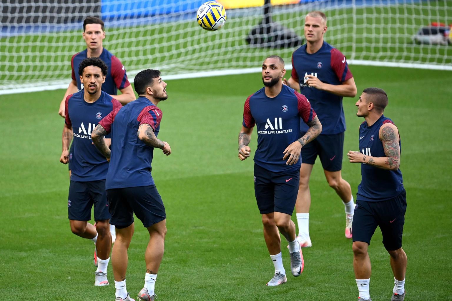 Paris Saint-Germain's Argentine midfielder Leandro Paredes attends a training session at the Stade de France stadium on July 30, 2020.