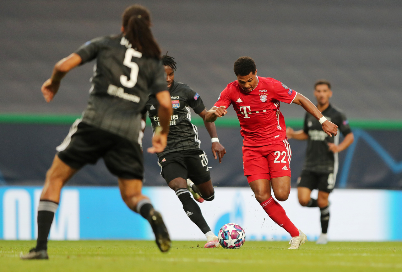 Bayern Munich's Serge Gnabry in action before scoring their first goal against Olympique Lyonnais.