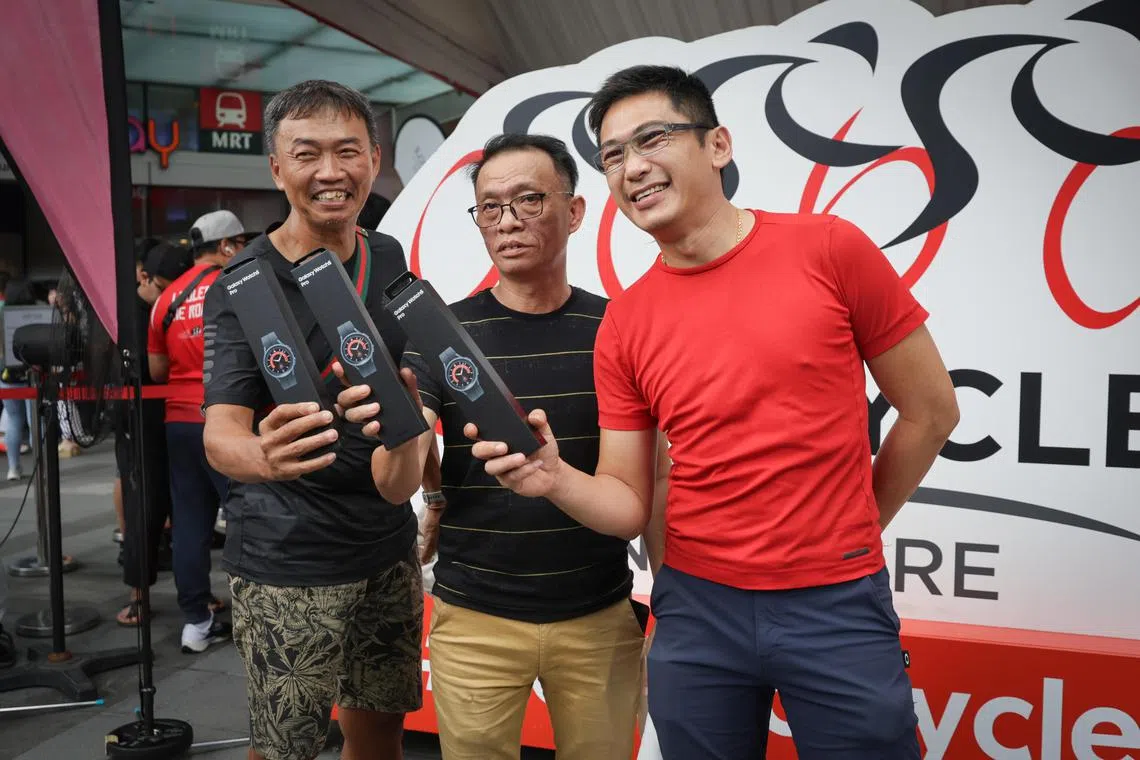 SINGAPORE – Nearly 24 hours before the launch of the OCBC Cycle 2024, cycling enthusiasts Jeffrey Chung, Jimmy Cheng and Phillip Ong were in the queue at Orchard Gateway on March 4 to register.