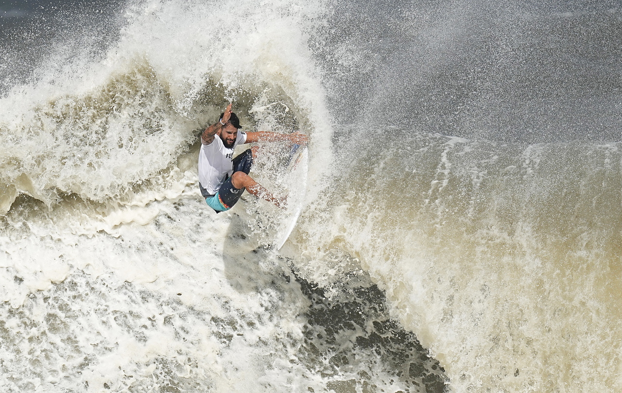 Italo Ferreira scored 15.14 to Kanoa Igarashi's 6.60 at Tsurigasaki Beach on July 27, 2021.