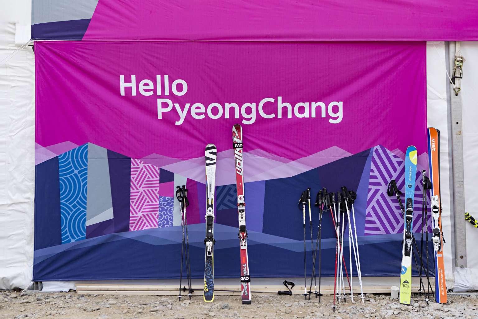Skiing equipment displayed at the Jeongseon Alpine Centre on Jan 22, 2016.