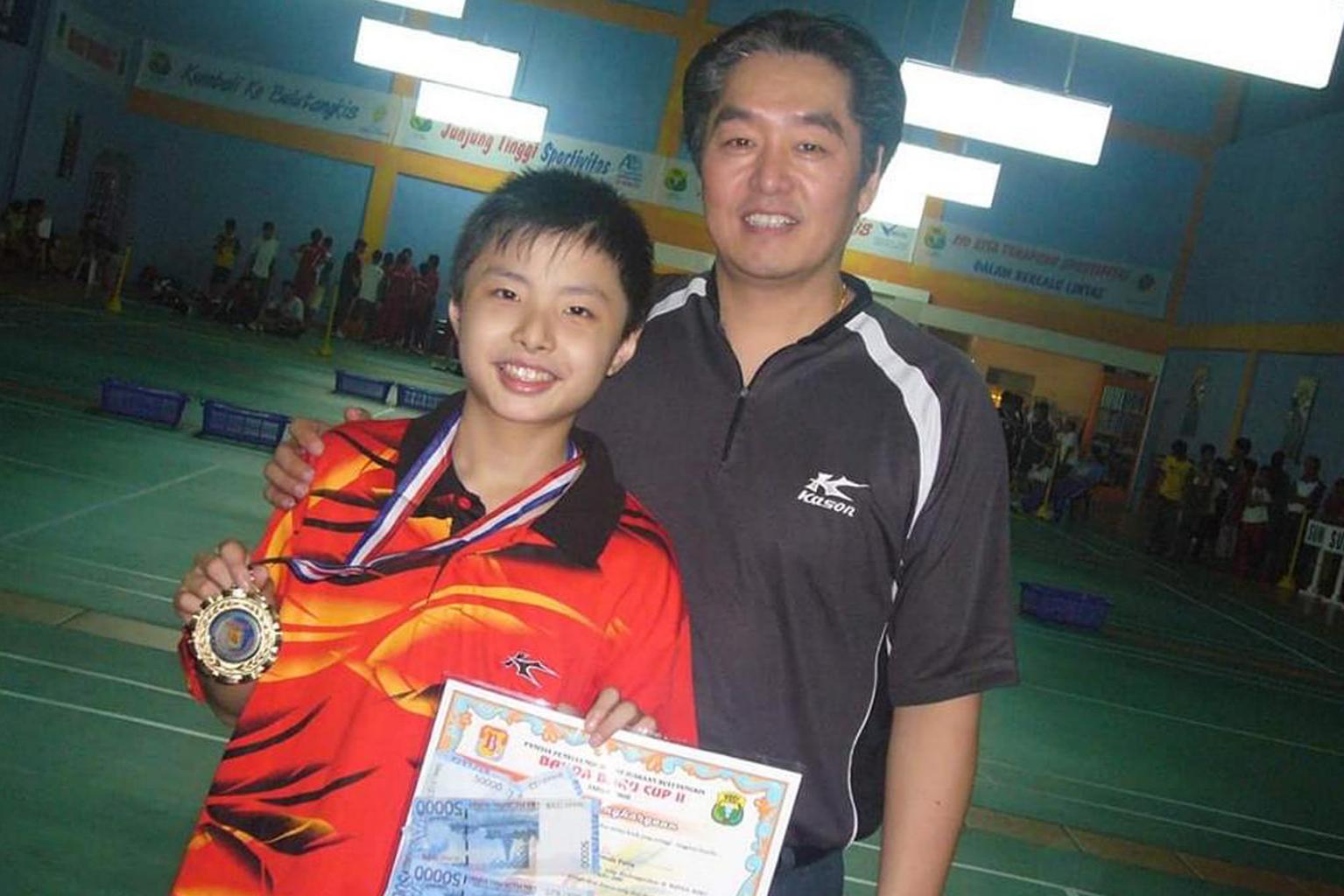 Shi Yuqi (left) was 10 when he was scouted by former Singapore national coach and Singapore Badminton School founder Zhang Qing Song.