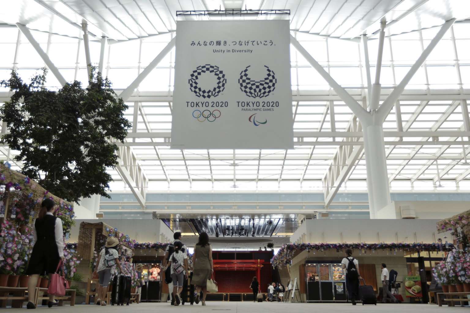 A banner displaying the Tokyo 2020 Olympic and Paralympic Games Preparation emblem is seen at Haneda Airport on Aug 24, 2016.