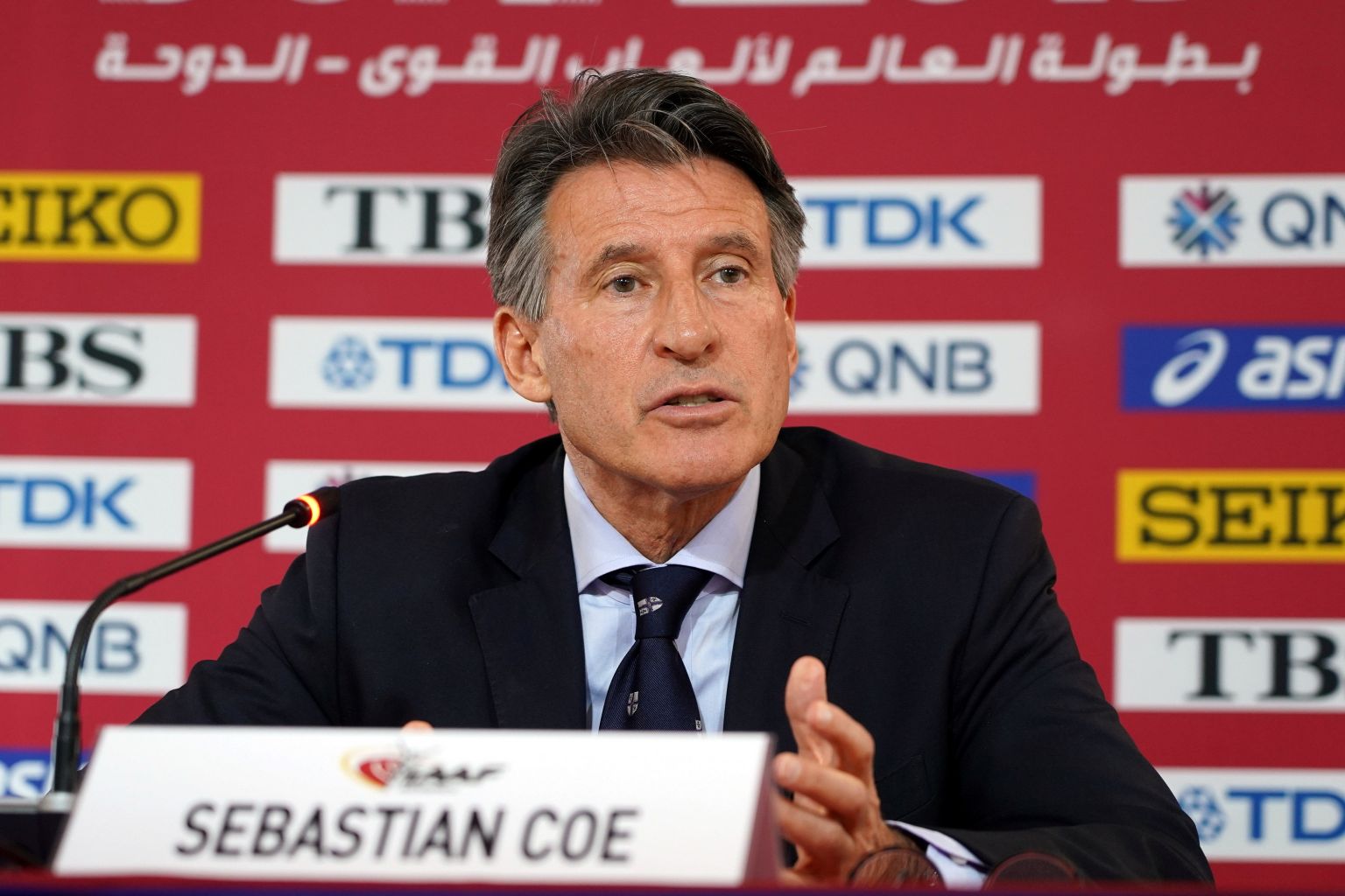 IAAF president Sebastian Coe speaks at a press conference in 2019.