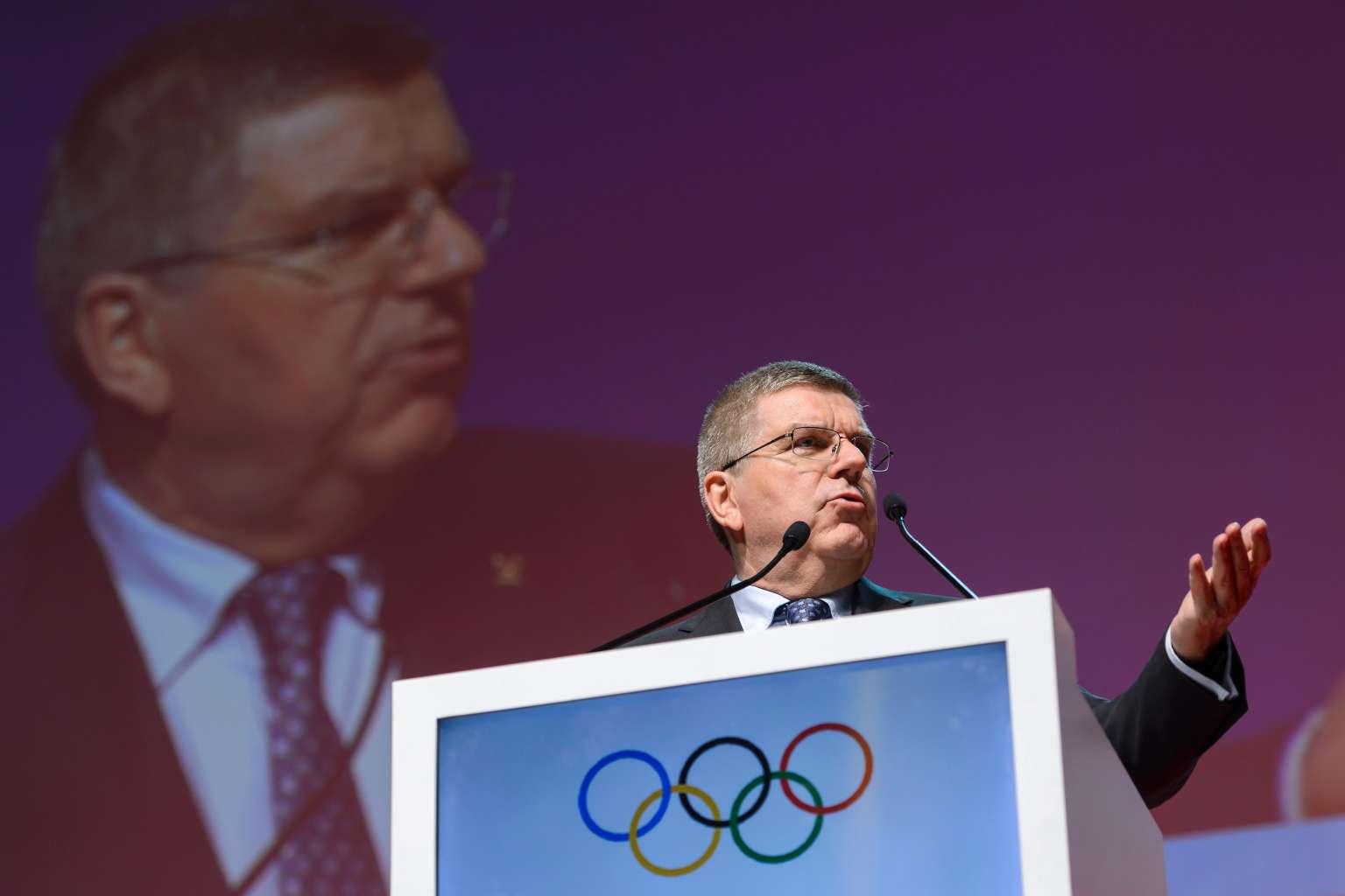 President of the International Olympic Committee (IOC) Thomas Bach delivers a speech during the opening ceremony of the SportAccord Convention 2016 on April 19, 2016 in Lausanne.