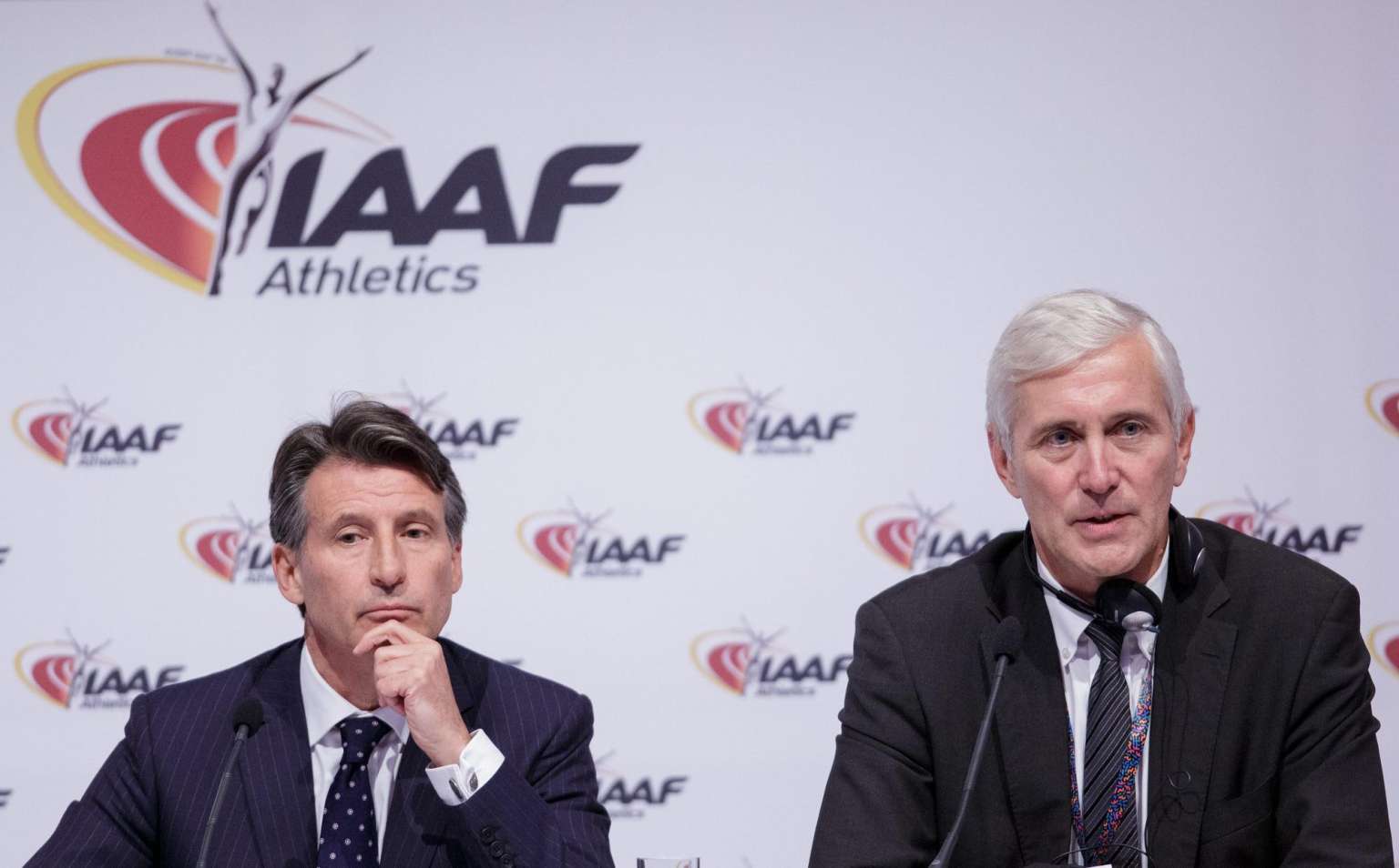 Sebastian Coe (left), President of the IAAF, and Rune Andersen, head of IAAF taskforce on Russia, address a news conference after a council meeting in Vienna, Austria, on June 17.