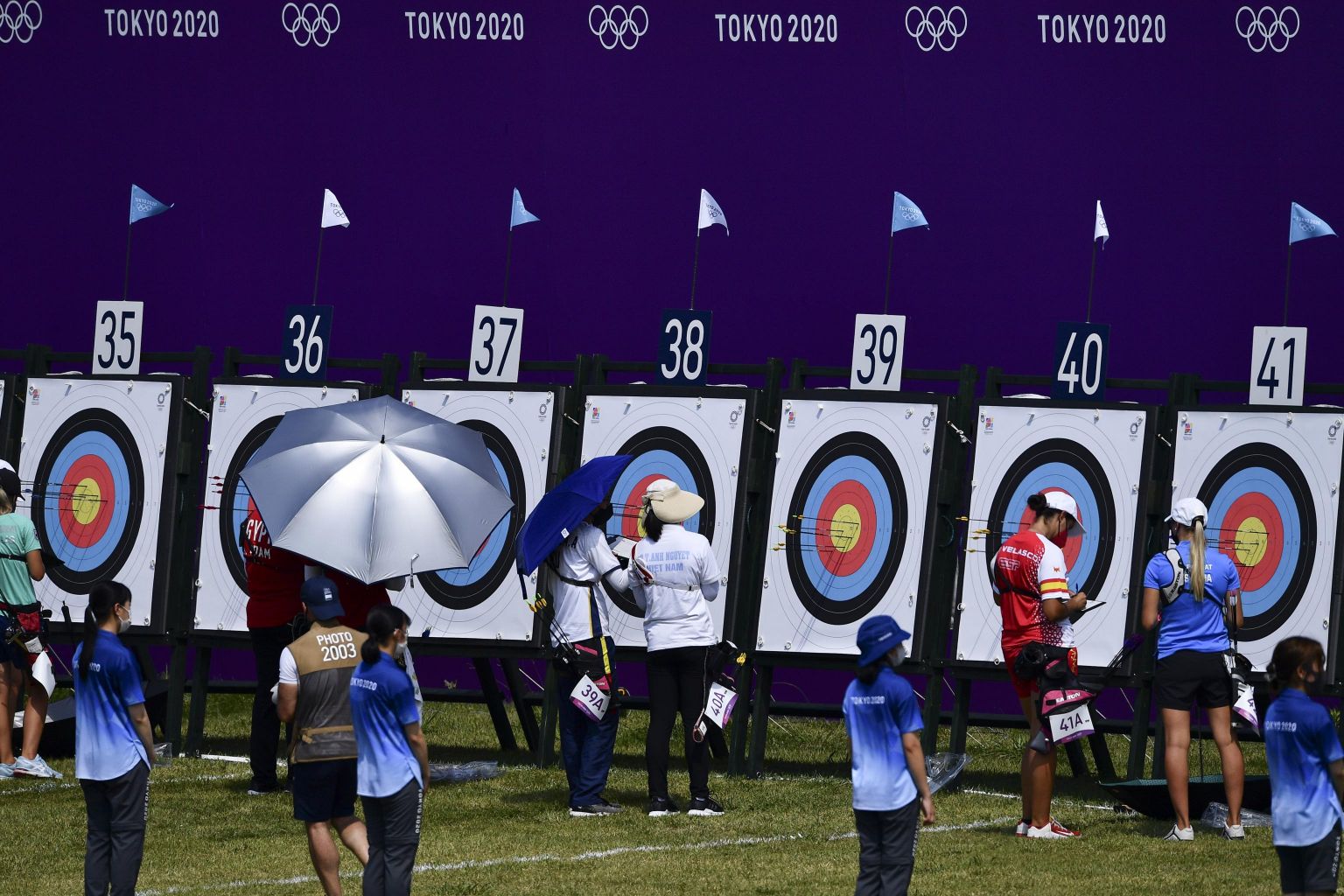 With temperatures expected to peak at around 33 deg C in the archery dome on the first day of competition, athletes had challenges with hydration and staying cool, as well as those posed by the Covid-19 pandemic.