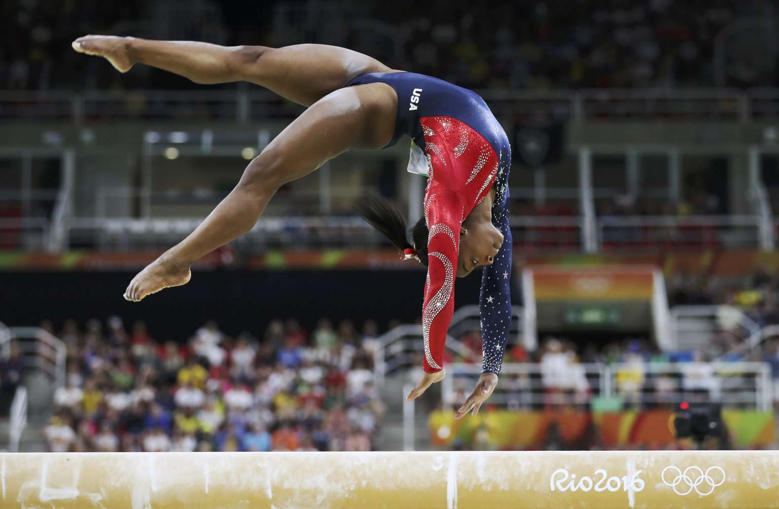 Simone Biles of the USA competes on the beam during the women's qualifications at the Rio 2016 Olympic Games.