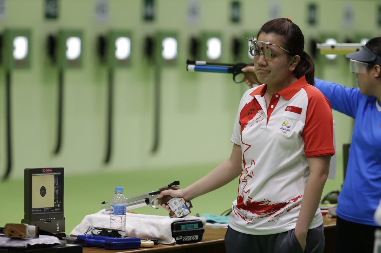 Singapore's Teo Shun Xie reacting during her 10m air pistol event, during the Olympic Games in Rio de Janeiro, on Aug 7, 2016.