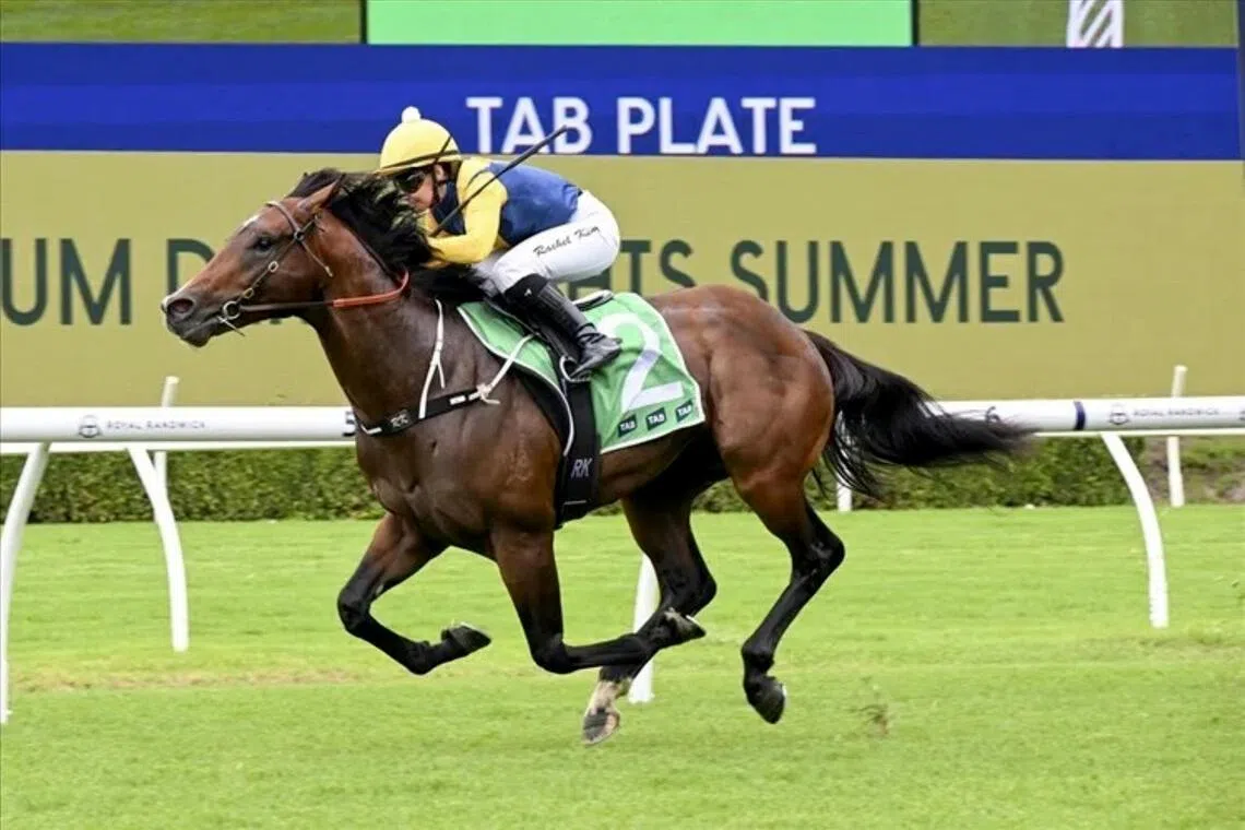 Golden Slipper aspirant Warwoven (Rachel King) at his debut win in a 1,000m race at Randwick on Dec 20, 2025. A win in the Group 3 Pago Pago Stakes (1,200m) at Rosehill on March 14 will qualify the Bjorn Baker-trained colt for a quick back-up in the world's richest two-year-old race on March 21.