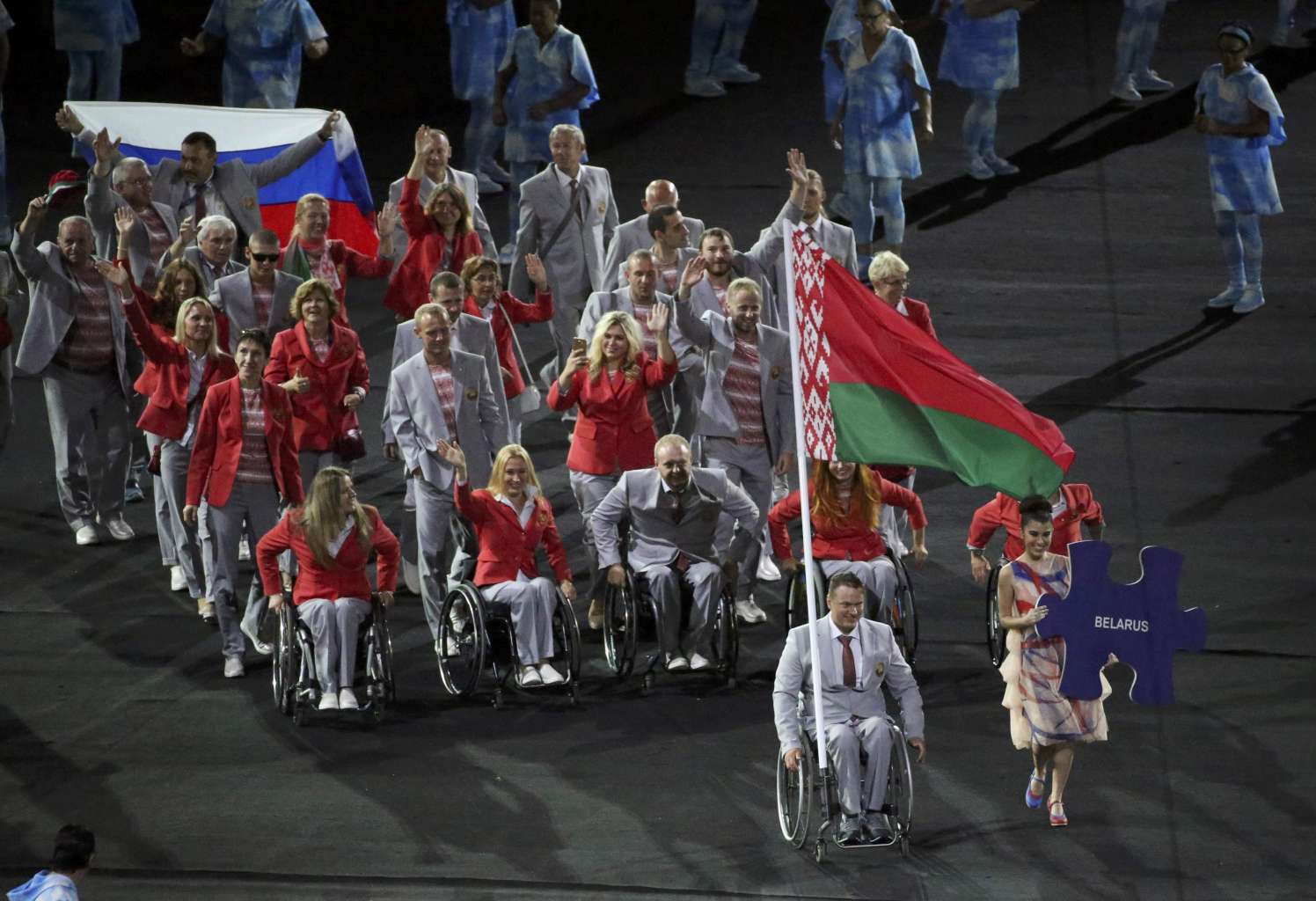 MOSCOW (Reuters) - The Belarus team carried Russia's flag as well as their own at the Paralympic Games opening ceremony, in a show of support for their near-neighbours, who were banned from the competition in Rio de Janeiro.