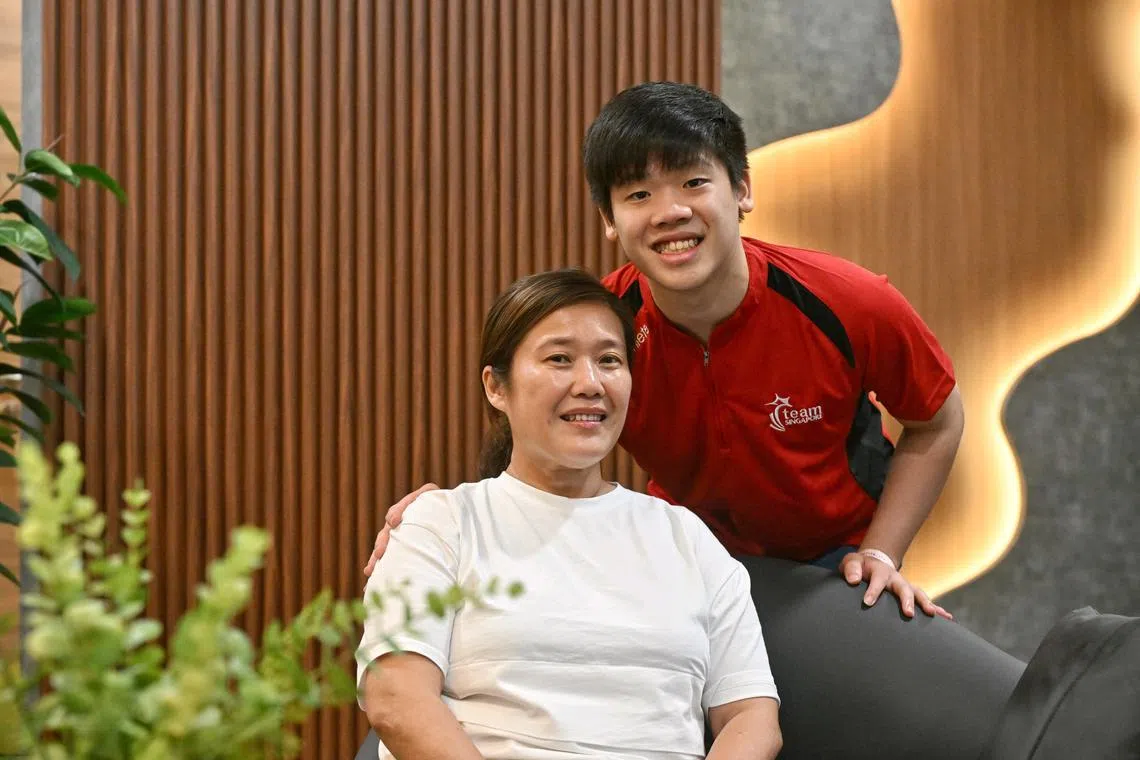 Table tennis player Izaac Quek with his mother, Madam Chew Soon.