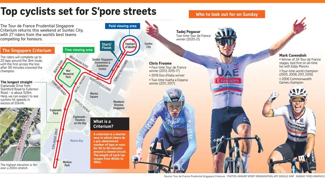 For now though, his attention – as well as that of Kuss, Pogacar and Philipsen – is firmly on Sunday’s Tour de France Prudential Singapore Criterium. They are part of the 27-competitor field who will race on the Suntec City circuit.