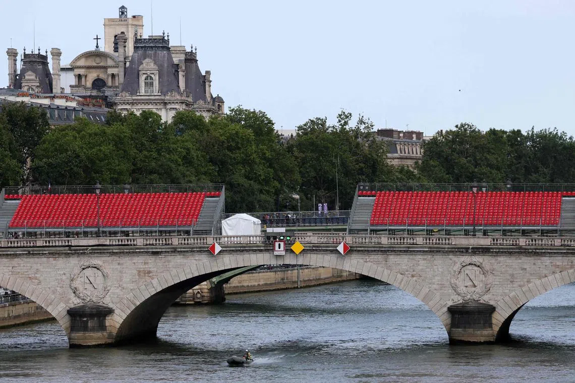 Stands have been set up on the River Seine for spectators, ahead of the opening ceremony for the Paris 2024 Olympic Games.