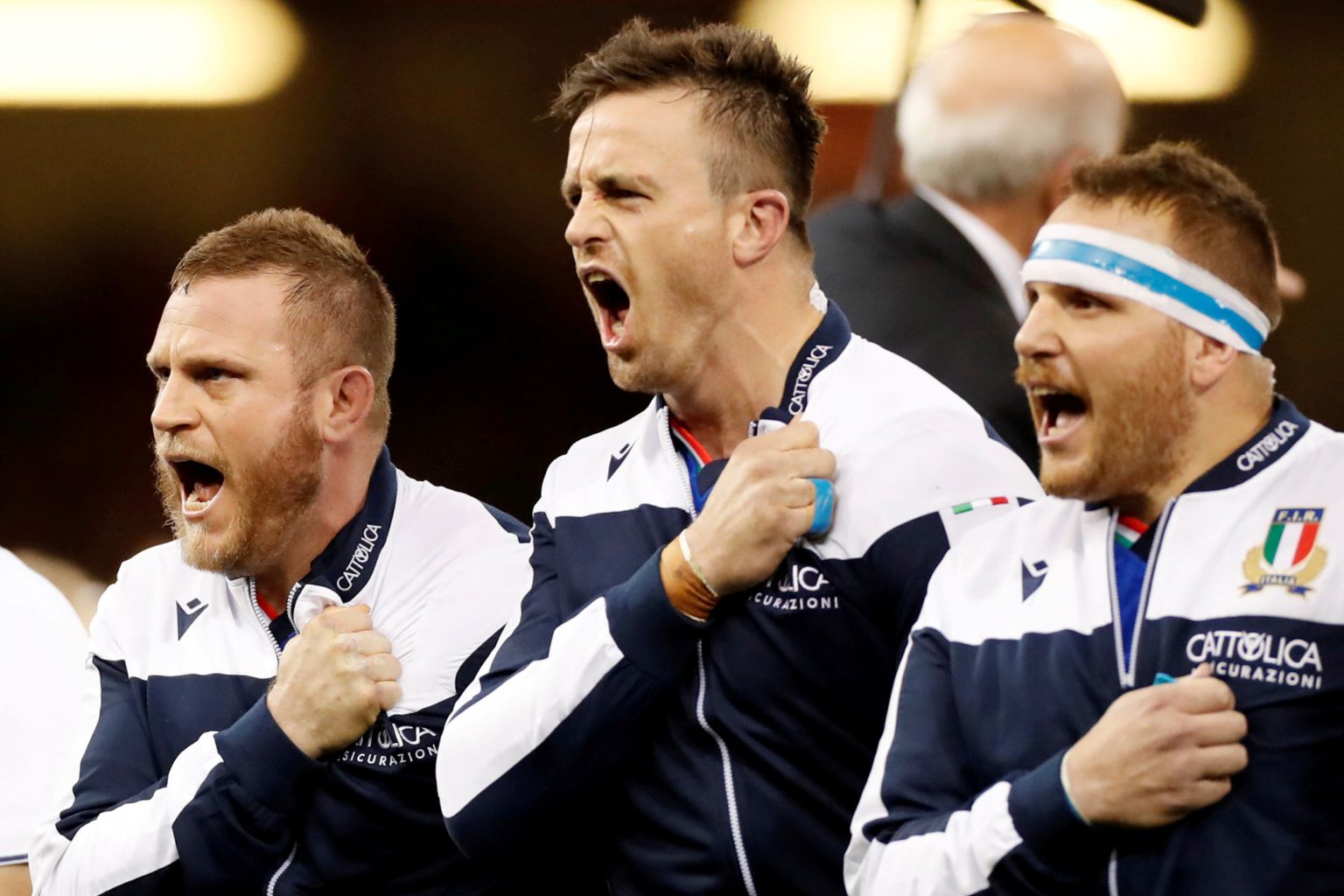 Italy players during the national anthem in Britain on Feb 1, 2020.