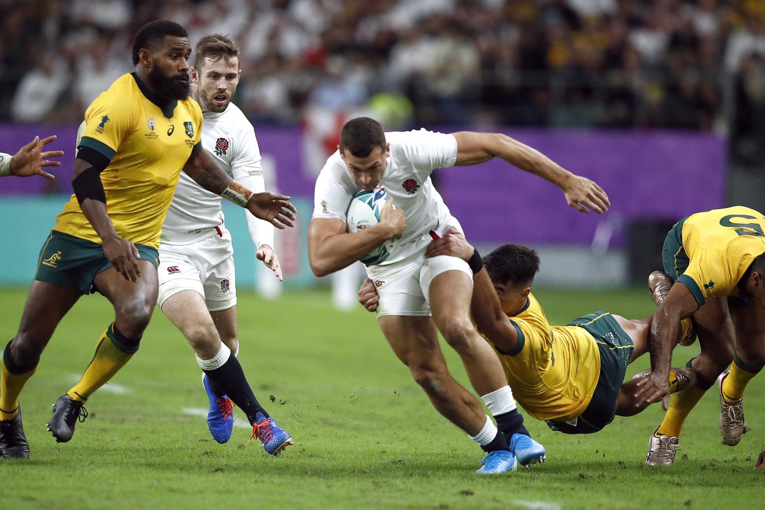 England's eight held firm, the defence held firm, and soon they were back in the Australia half hammering away at the try line and earning a penalty that Farrell slotted to take the lead to 14 points. The 2003 champions were now in full control and Farrell slotted a fourth penalty after Australia collapsed a rolling maul in desperation.
