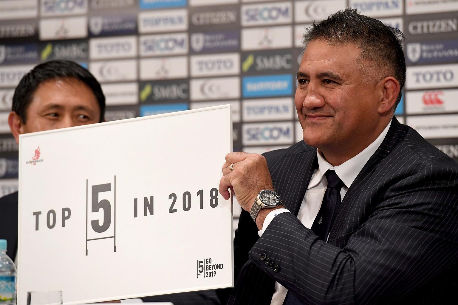 TOKYO (AFP) - The new coach of Japan's Sunwolves Super Rugby side said on Monday (Dec 4) he was targeting a top-five finish next season, despite the team being on the wrong end of multiple hidings in recent years.