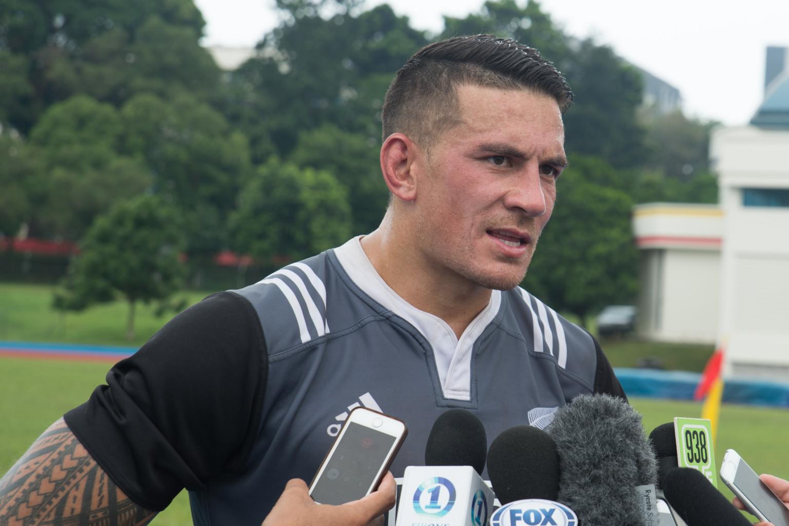 All Blacks Sevens' Sonny Bill Williams speaks to media during a training session on April 14, 2016.