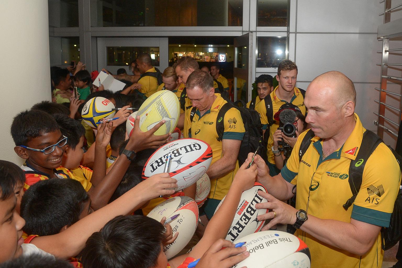 The Australian rugby team arriving at the Pan Pacific Hotel ahead of the Singapore Sevens on April 11.
