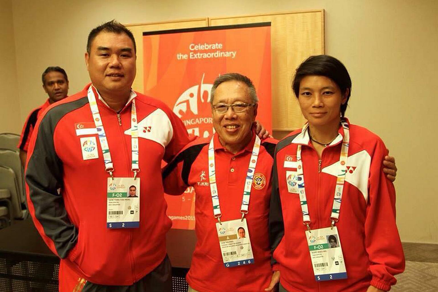 (From left) New SRU technical director Gene Tong, former SRU president Low Teo Ping, and national women's rugby head coach Wang Shao Ing at the SEA Games in 2015.