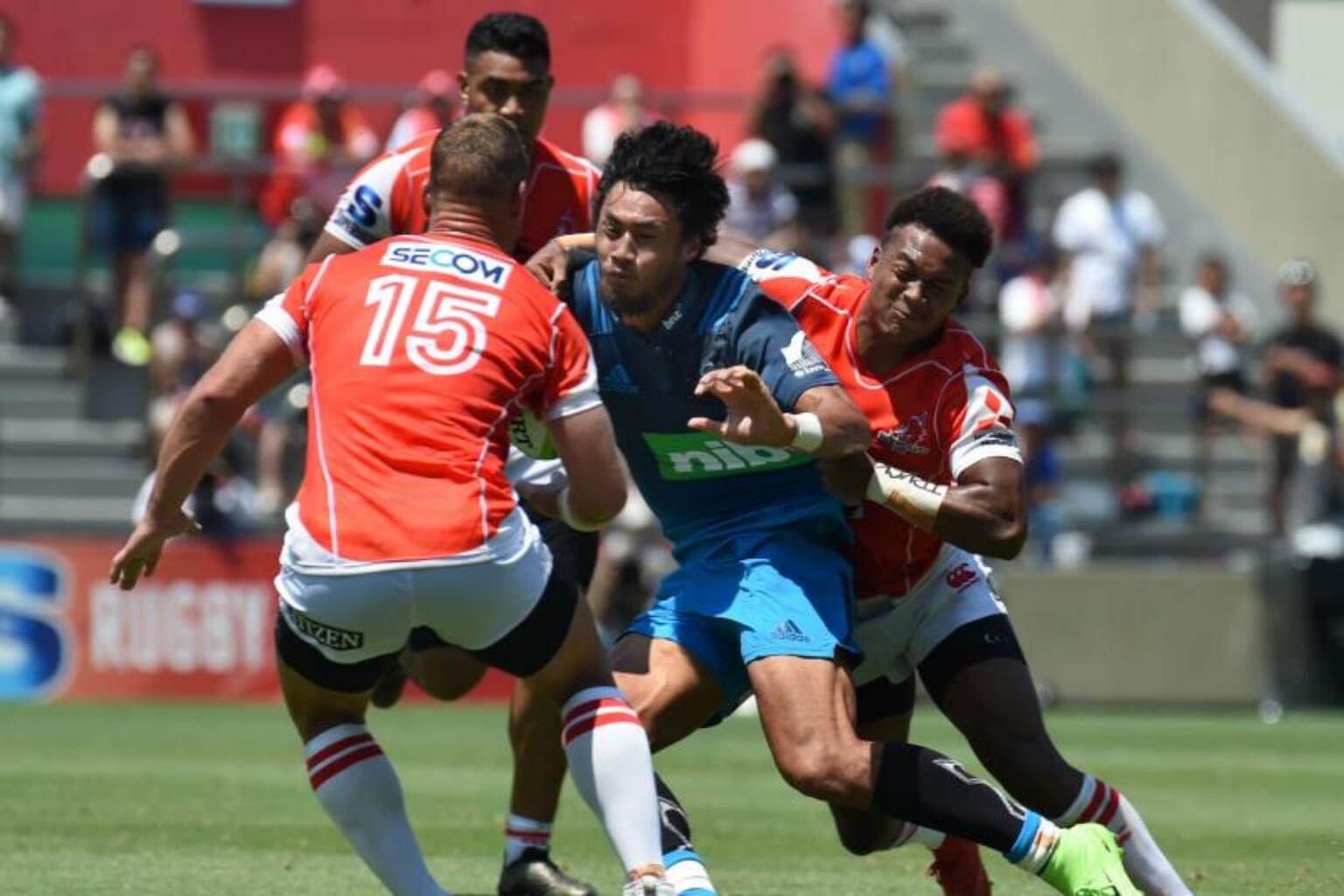Tries from James Parsons, Gerard Cowley-Tuioti and Michael Collins looked to have put the Blues in command before Keisuke Uchida capped a lightning attack to help keep the Sunwolves in touch at the break.