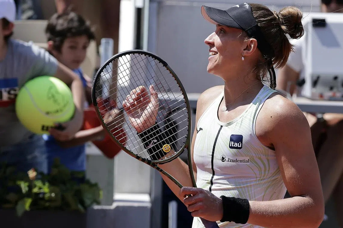 Beatriz Haddad Maia celebrating after winning against Sara Sorribes Tormo on June 5, 2023.