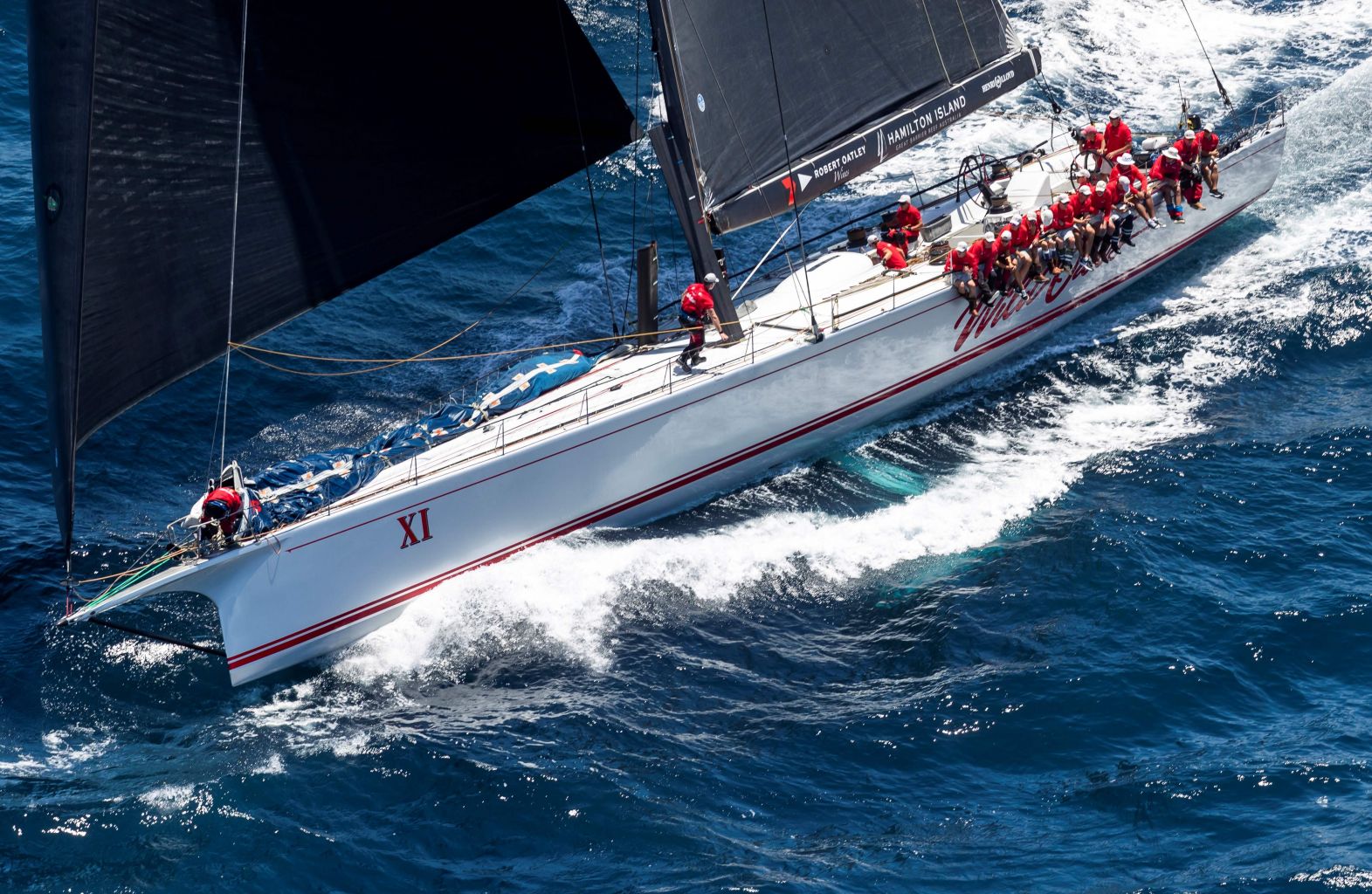 Australia's Wild Oats XI yacht competing in the Sydney to Hobart yacht race near Tasmania.