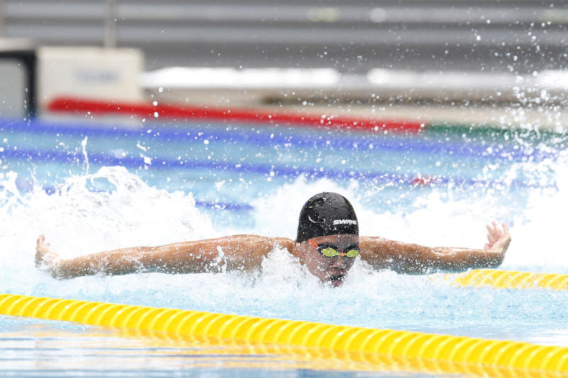 Mikkel Lee of Anglo-Chinese School (Independent) in the B Division 50m butterfly final at the OCBC Aquatic Centre on April 19, 2018.