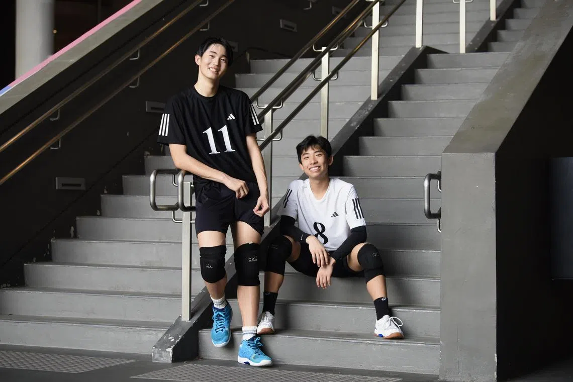 St Hilda’s Secondary School volleyball co-captains Jaryl Wong (left), 16, and Keshon Chiang, 15, after winning the B Division title.