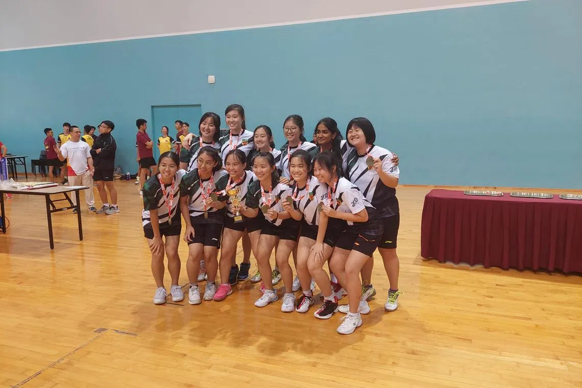 In the A girls’ final, RI swept Hwa Chong Institution 5-0 for their sixth consecutive title, helping the school achieve a double.