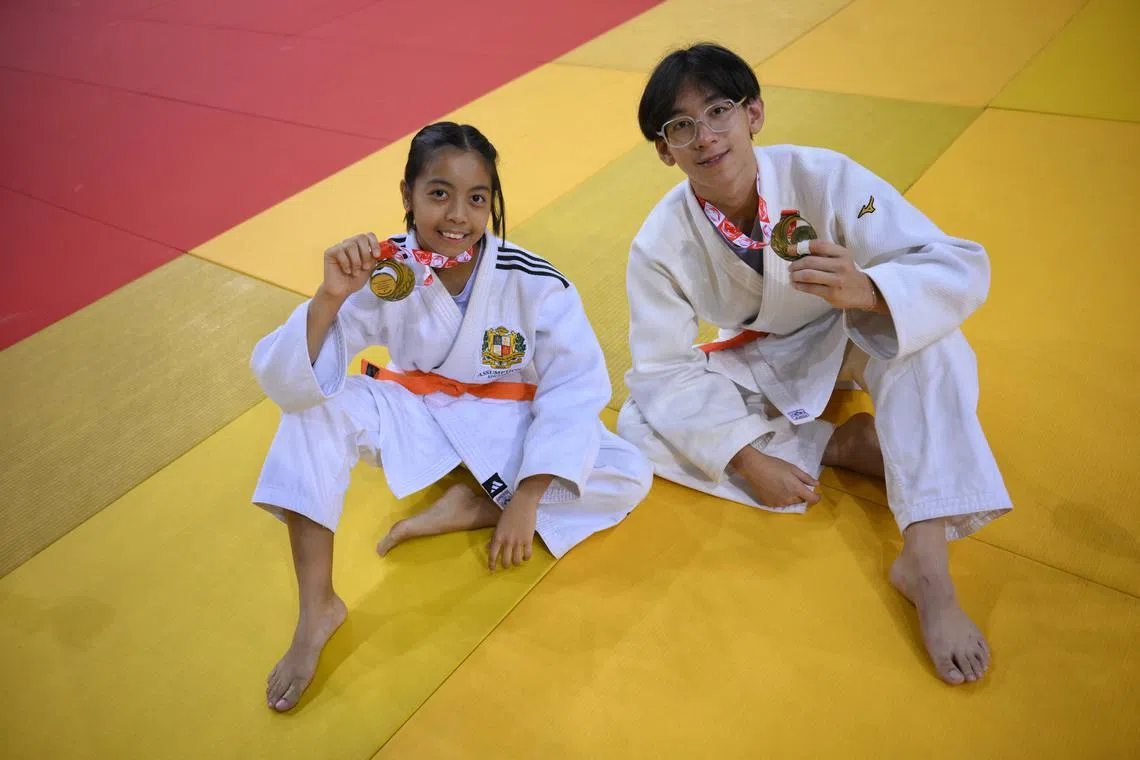 Jullie Anne de la Cruz Tupaz (left) and Jae Len from Assumption English School won the B Division girls’ judo 45kg final and the B Division boys’ judo 66kg final at the National School Games respectively.