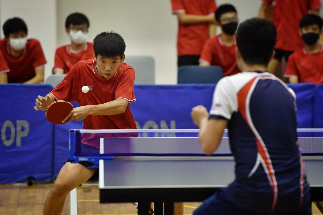 Tan Zhao Ray from Hwa Chong Institution plays against Alfred Ting from River Valley High School on April 22, 2021.