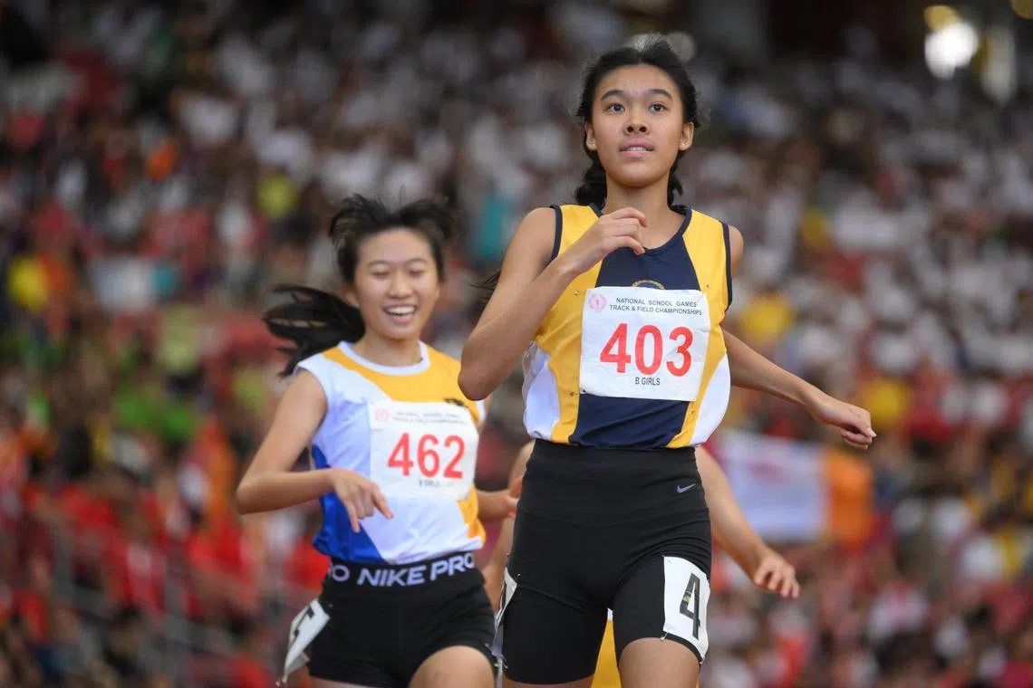 SINGAPORE – Heading into the final day of the National School Games (NSG) track and field championships on April 19, finishing first was foremost on the minds of high jumper Rei Tan and sprinter Clara Lim.